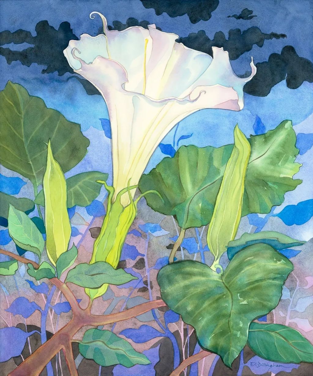"Sacred daturas blooming in the Coconino National Forest of northern Arizona during the monsoon thunderstorms of late summer."